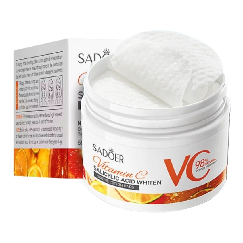 SADOER Ватные диски с салициловой кислотой и витамином С с антибактериальным действием, 55 шт.