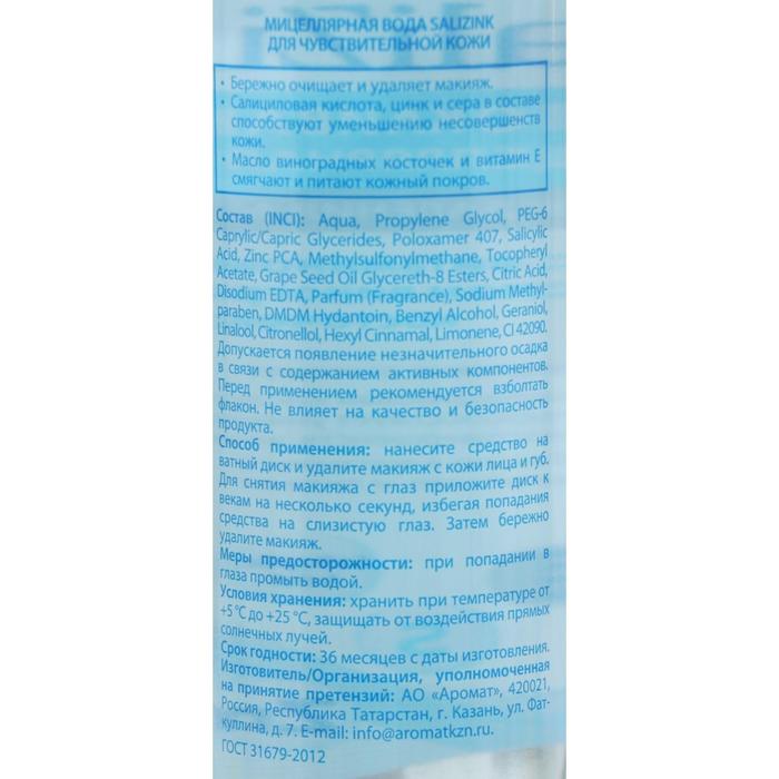 Мицеллярная вода SALIZINK для чувствительной кожи:
