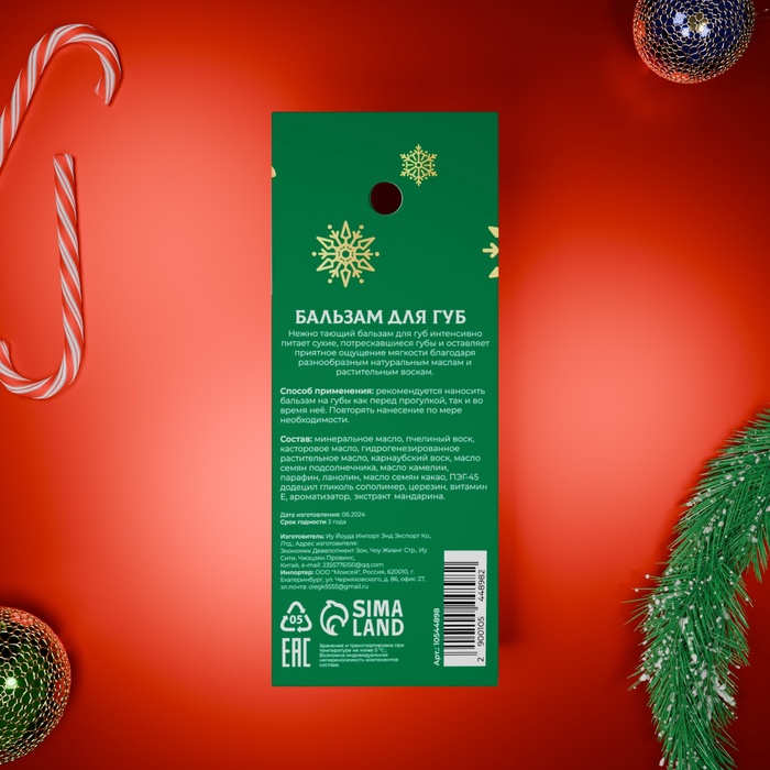 Формула бальзама обеспечивает интенсивное увлажнение и защиту губ от зимнего холода и ветра, оставляя их мягкими и ухоженными. Компактный формат позволяет всегда иметь средство под рукой, будь то на прогулке или праздничной вечеринке. Бальзам станет отличным дополнением к новогоднему подарку, радуя не только полезными свойствами, но и своей праздничной атмосферой.