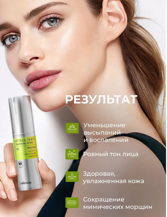АКЦИЯ! Ст. цена 1081 р!! ХИТ!! СELIMAX THE VITA-A RETINOL SHOT TIGHTENING SERUM Подтягивающая сыворотка с ретинолом и микроиглами 30 мл