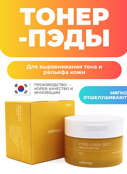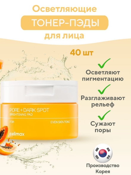 АКЦИЯ! ст. цена 970 руб CELIMAX PORE+DARK SPOT BRIGHTENING PAD Тонер-пэды для выравнивания тона и рельефа кожи 40 шт