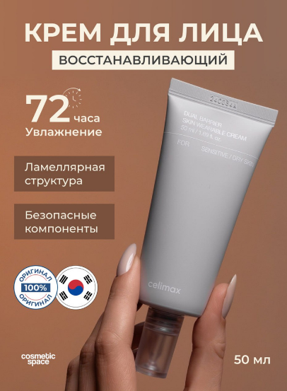 АКЦИЯ! ст. цена 1390 руб! CELIMAX DUAL BARRIER SKIN WEARABLE CREAM Барьерный крем с комплексом церамидов 50 мл