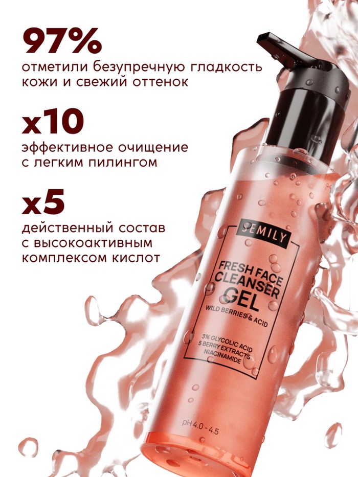 Гель для умывания очищающий SEMILY с АНА кислотами, 200 мл