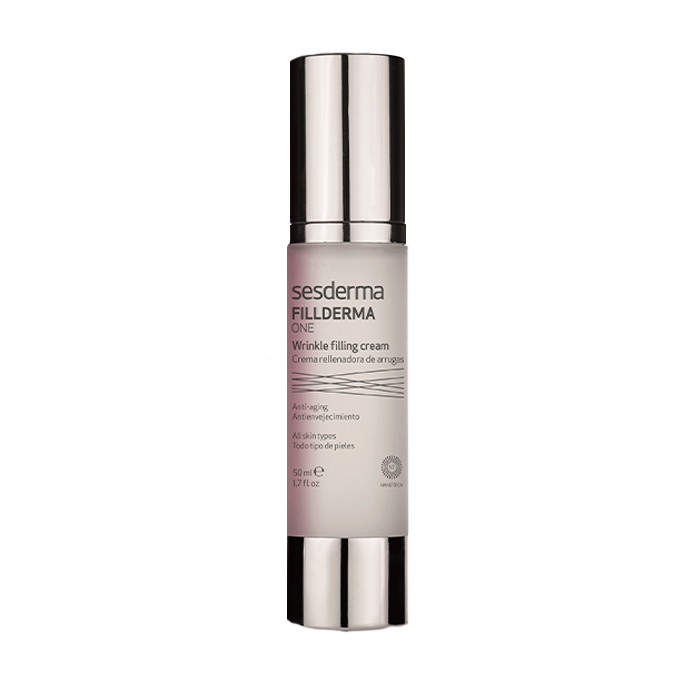 SESDERMA ( Сесдерма ) Fillderma ONE — крем для лица для наружного заполнения морщин. Обеспечивает мгновенное и отсроченное заполнение морщин, уменьшая их глубину изнутри и оказывая лифтинговый эффект. Содержит активные ингредиенты, которые воздействуют на морщины на четырех разных уровнях: эпидермиса, дермально-эпидермального соединения, дермы и гиподермы. Обновляет и реструктурирует дермальный матрикс, стимулируя синтез коллагена, эластина, фибронектина и гиалуроновой кислоты, которые с возрастом перестают вырабатываться организмом. Интенсивно увлажняет и улучшает внешний вид кожи: смягчает, улучшает цвет, придает сияние. Оказывает подтягивающее действие, повышает эластичность кожи.
