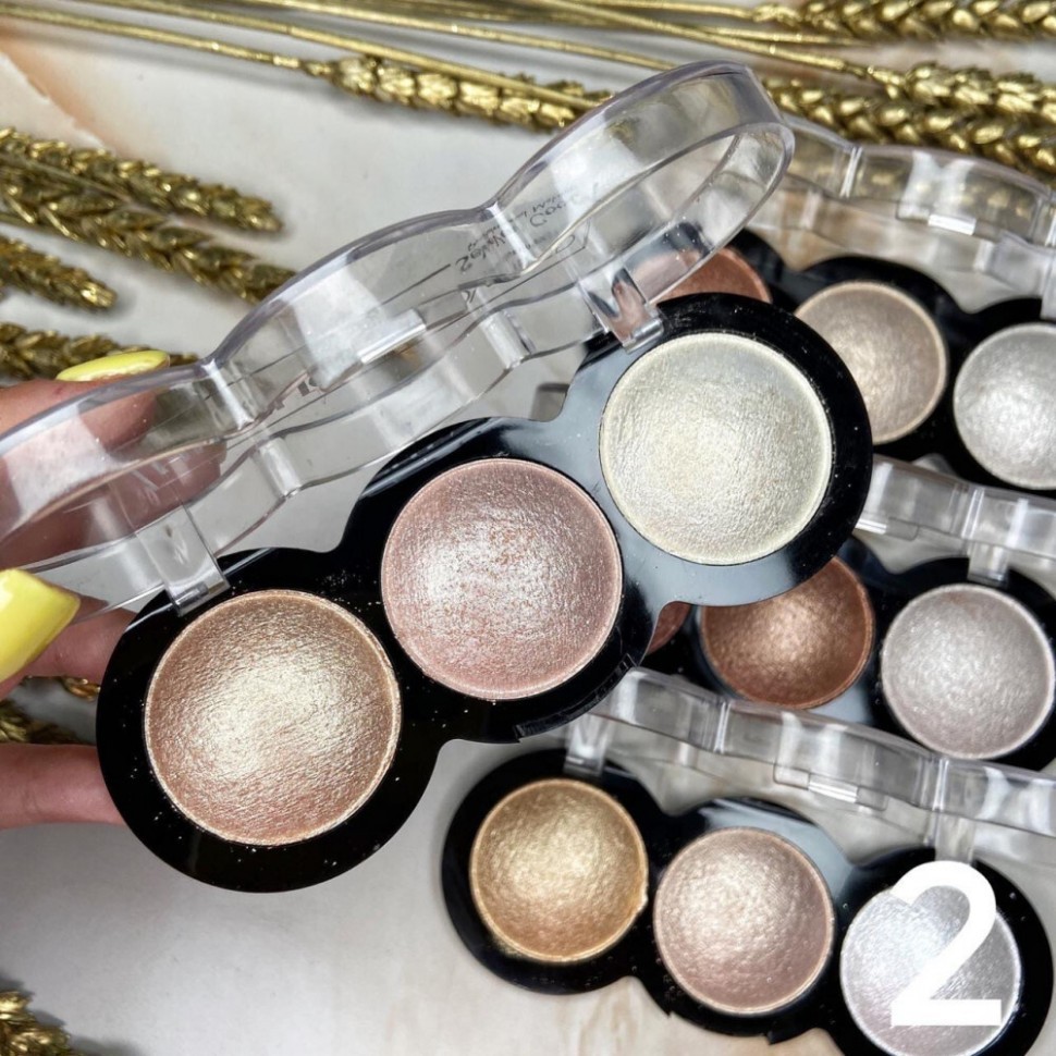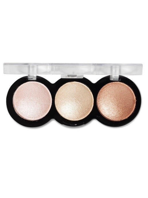 Компактная палетка сверкающих хайлайтеров. Покрытие от легкого до плотного. Визуально корректирует черты лица - подсвечивает, позволяет подчеркнуть скулы. Идеальное сочетание в одной палетке сразу 3 оттенков хайлайтера. Потрясающе удобно в использовании. Профессиональная текстура позволяет идеально растушевать продукт без всяких усилий. Подходит для всех типов кожи.
