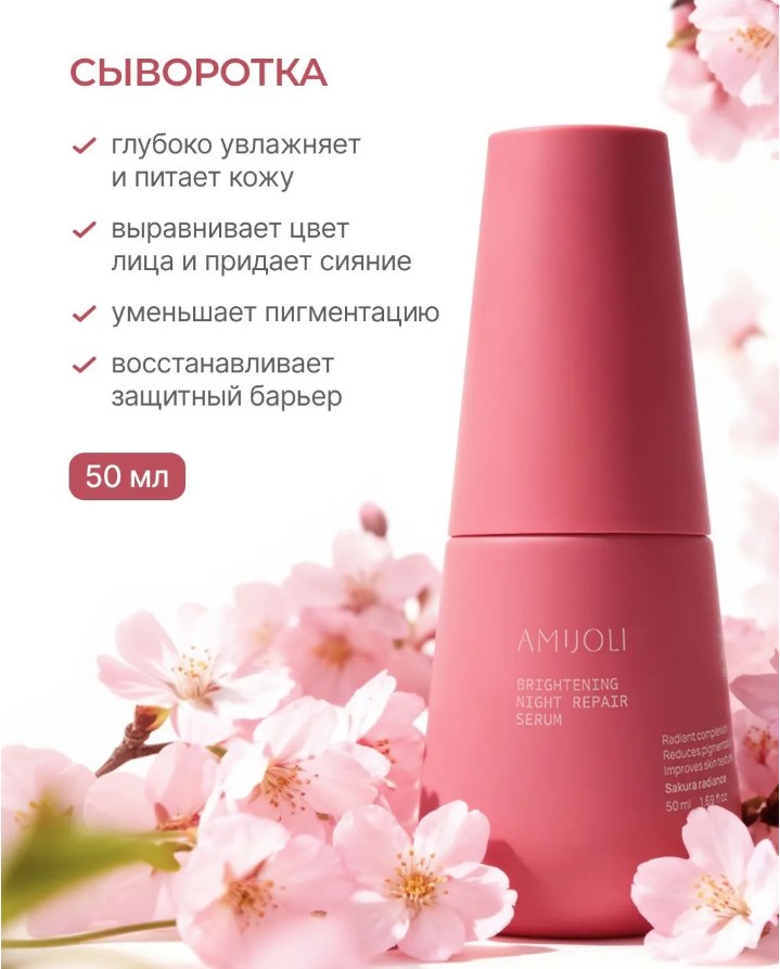 AMIJOLI Sakura Radiance Набор: Ночная сыворотка для лица, Крем для глаз 50мл+25мл