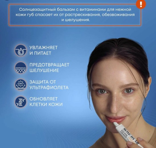 Солнцезащитный питательный бальзам для нежной кожи губ спасает их от ультрафиолетовых лучей, растрескивания, обезвоживания и шелушения. Мягкая и насыщенная формула бальзама состоит из входящих в нее 10 видов витаминов и гиалуроновой кислоты. Витамины восстанавливают поврежденную кожу и снабжают дефицитными питательными веществами, а гиалуроновая кислота притягивает влагу извне для поддержания увлажнённости кожи и усиления солнцезащитного эффекта. Масло ши и оливковое масло - высокоувлажняющие растительные компоненты природного происхождения, справляются с омертвевшими клетками кожи и доставляют питательные вещества и влагу, увлажняя и делая гладкой огрубевшую и шелушащуюся кожу губ. Пантенол успокаивает раздраженную кожу и ускоряет процесс ее регенерации. В результате бальзам повышает тургор кожи, возвращая губам приятную полноту, защищает от раздражения, разглаживает складочки, восстанавливает естественный цвет, способствует ускоренному заживлению ранок, снижает восприимчивость кожи к внешним раздражителям.