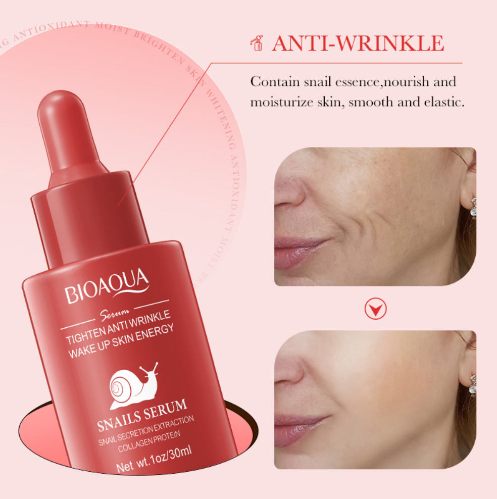 Антивозрастная сыворотка для лица с..показать муцином улитки Bioaqua Snail Serum освежает и омолаживает кожу. Она минимизирует количество морщин, улучшает цвет лица, обеспечивает глубокое питание и увлажнение.Содержит фильтрат секрета улитки. Имеет нежную и гладкую водянистую текстуру. Позволяет легко впитывать воду, увлажняет сухую и испытывающую жажду кожу, помогает избежать сухость кожи, удерживает влагу.Муцин улитки подтягивает кожу, способствует выработке собственного коллагена и эластина, активизирует процессы регенерации. Гиалуроновая кислота притягивает и удерживает влагу в клетках, благодаря чему кожа остается идеально увлажненной, гладкой и эластичной.