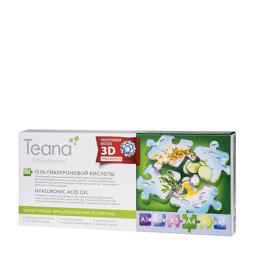 TEANA ( Тиана ) Одно из самых востребованных и эффективных средств для глубокого увлажнения, восстановления упругости кожного покрова и заметного омоложения. Уникальная разработка лаборатории Teana – 3D-гиалуроновая кислота – способствует мгновенному смягчению и разглаживанию кожи, повышает ее тонус. Благодаря сочетанию разных фракций (низкомолекулярной, среднемолекулярной и высокомолекулярной) гиалуроновая кислота помогает быстро восполнить потерю влаги и доставить полезные питательные вещества в глубокие слои дермы. Ежедневное применение сыворотки повысит защитные свойства кожи, улучшит внешний вид, повысит тонус и насытит клетки необходимыми микроэлементами. Подходит для сухой, атоничной, обезвоженной и чувствительной кожи.