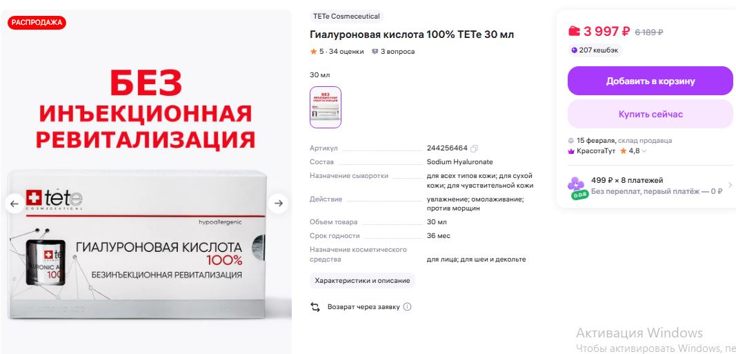 товар заказан с размером/весом: «30 мл» в закупке 414888