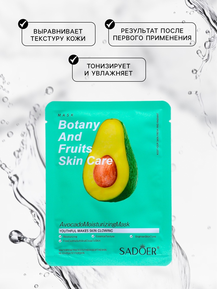 Маска с экстрактом авокадо питает, смягчает и успокаивает кожу, придаёт ей мягкость, бархатистость, выравнивает тон лица, устраняет тусклость кожи, улучшает эластичность, повышает тонус и упругость. Экстракт авокадо - источник необходимых витаминов, веществ, макро и микроэлементов, таких как белки, ненасыщенные и насыщенные жирные кислоты, углеводы, аминокислоты, фосфатиды, лецитин. Авокадо оказывает интенсивное смягчающее и питающее действие, что способствует устранению шелушений, сухости и стянутости.