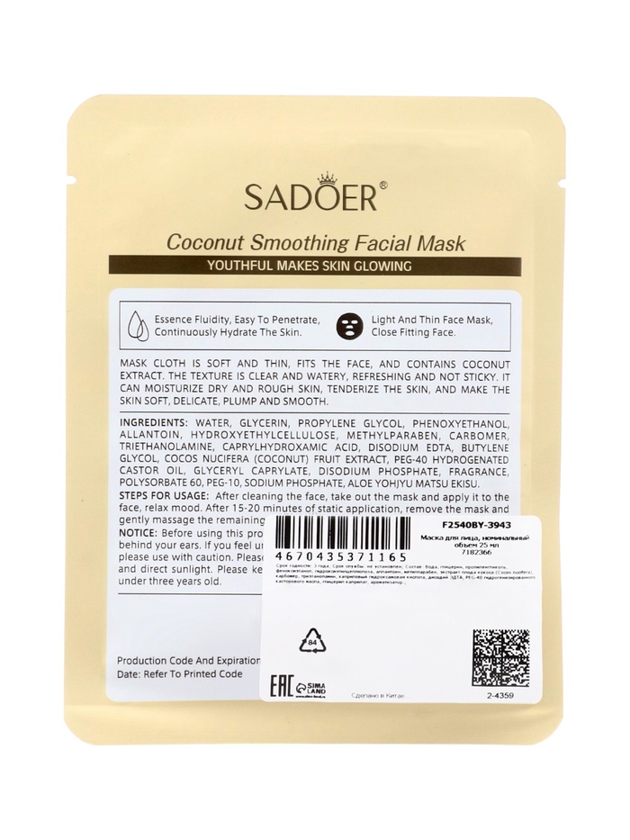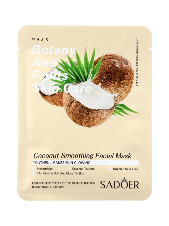 Кокос содержит насыщенные жирные масла, витамины В1, В2, С, Е, железо, магний, калий, кальций, фосфор, цинк. В его состав входят аминокислоты, фруктоза, глюкоза и сахарозы. Маска с экстрактом кокоса увлажняет и питает кожу. Экстракт плодов кокоса повышает упругость кожи, смягчает и тонизирует, а также оказывает антиоксидантное и противовоспалительное действие.