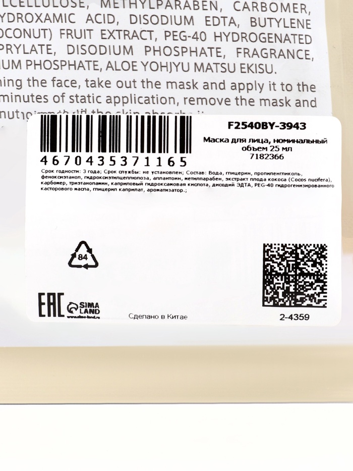 Способ применения: тщательно очистите кожу лица. Наложите маску на лицо и оставьте на 15-20 минут. Снимите маску, остатки смойте тёплой водой, либо распределите массажными движениями по лицу. Рекомендуется использовать 2-3 раза в неделю.