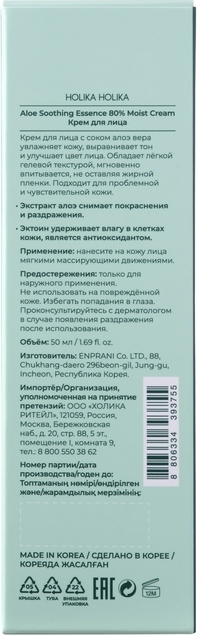 Увлажняющий крем для лица Aloe Soothing Essence 80% Moist Cream Calming