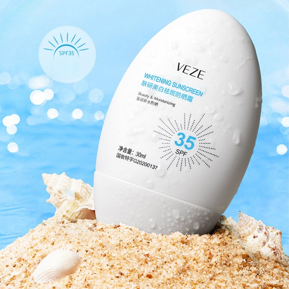Отбеливающий крем Veze Whitening Sunscreen эффективно борется с веснушками, осветляет кожу и защищает ее от солнечных лучей, весь средство с SPF35. Текстура крема нежирная, легко впитывается, поэтому кожа даже в жару дышит. Благодаря компонентам из состава также насыщается влагой.