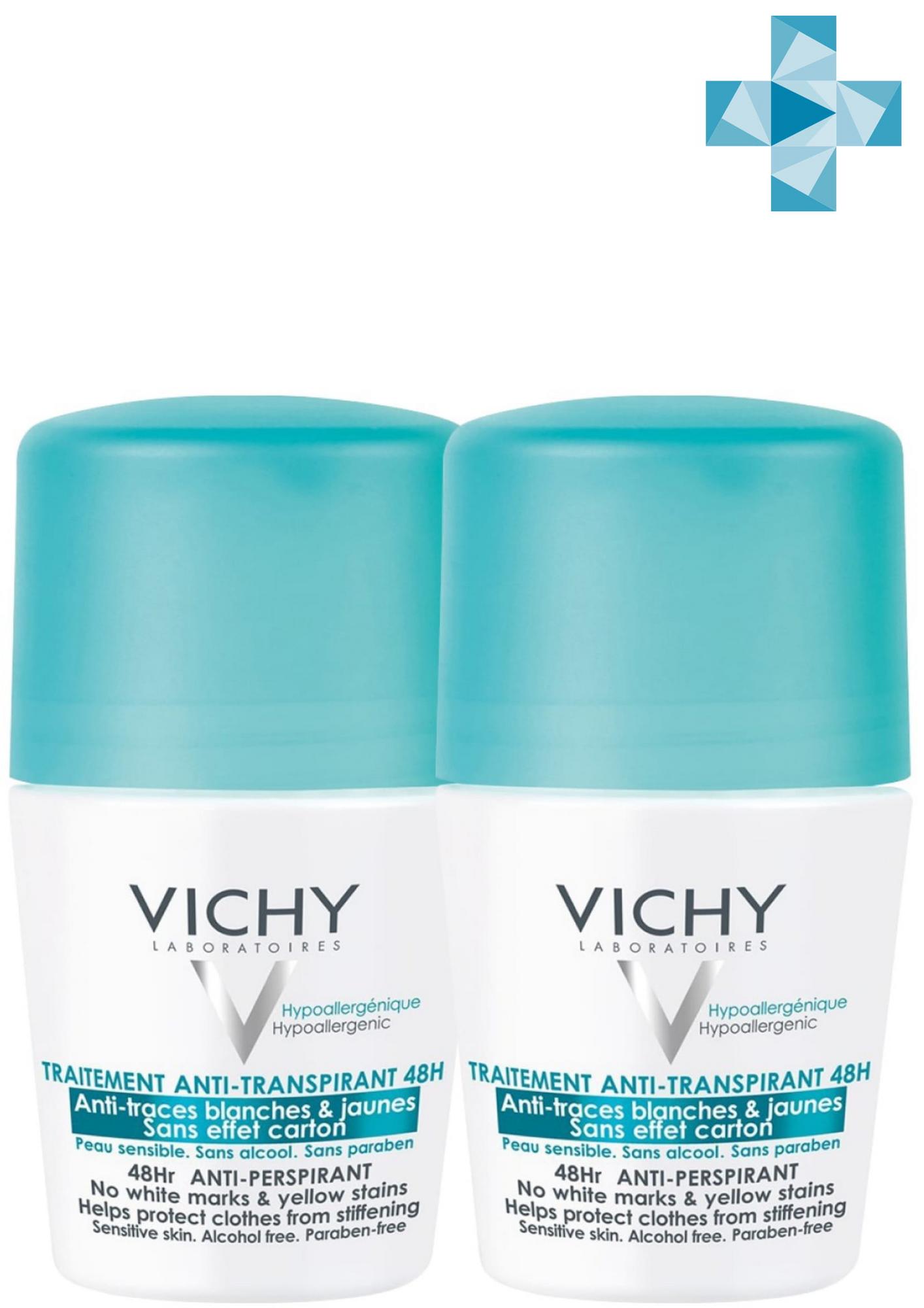 VICHY Шариковый дезодорант-антиперспирант против белых и желтых пятен 48 ч, 50 мл х 2 шт