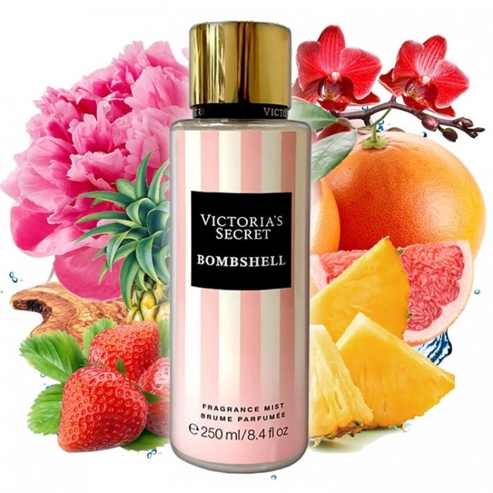 Парфюмированный спрей для тела Victoria's Secret Bombshell Fragrance Mist в одно мгновение обволакивает тело нежным, легким и свежим благоуханием, которое будет сопровождать Вас на протяжении всего дня! Тип аромата: теплый, фруктовый. Аромат: плоды ананаса, грейпфрут и ноты жасмина и ландыша, а также ванильная орхидея и клубника. Сладкий, но не приторный аромат поднимет настроение и не оставит равнодушным никого! Аромат для женщин, которые не боятся быть в центре внимания и притягивать взгляды. Спрей идеально подходит для ежедневного применения и служит легкой, освежающей альтернативой парфюму. Не оставляет следов и липкости на одежде. В состав миста входят компоненты, которые бережно ухаживают за кожей, оказывают успокаивающее и смягчающее действие. Не содержит спирта, основывается на сочетании экстрактов ромашки и алоэ вера.