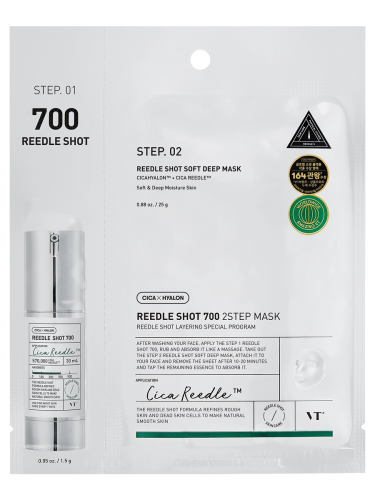 Увлажняющая двухступенчатая тканевая маска с микроиглами интенсивно насыщает влагой и надолго сохраняет её внутри клеток, выравнивает текстуру и тон, улучшает упругость и эластичность тканей, разглаживает морщины и препятствует их появлению, придаёт красивое сияние наполненной кожи.