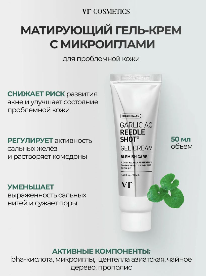 VT COSMETICS GARLIC AC REEDLE SHOT GEL CREAM Матирующий гель-крем для проблемной кожи, 50мл