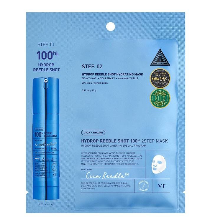 Двухфазная увлажняющая маска с микроиглами VT Cosmetics Hydrop Reedle Shot 100hL 2Step Mask — это настоящий прорыв в мире корейской косметики!