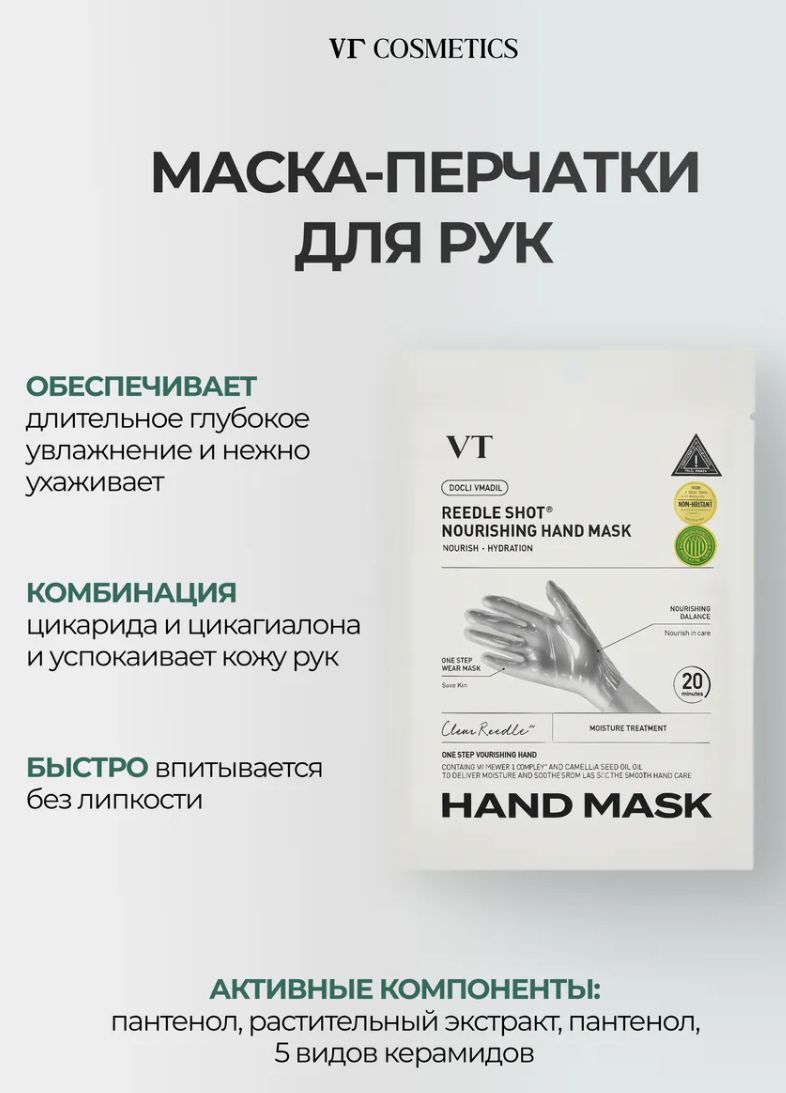 VT COSMETICS REEDLE SHOT NOURISHING HAND MASK Увлажняющая маска-перчатки для рук, 16мл (1пара)