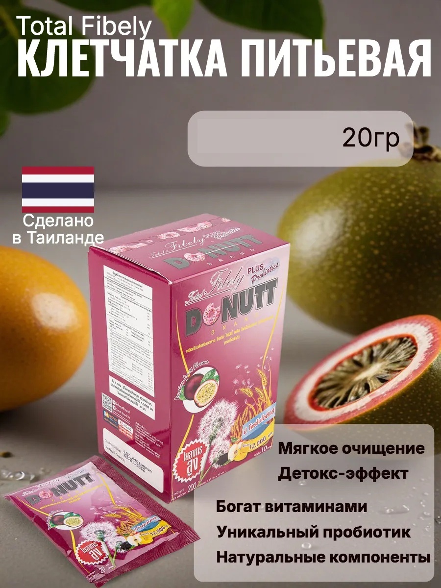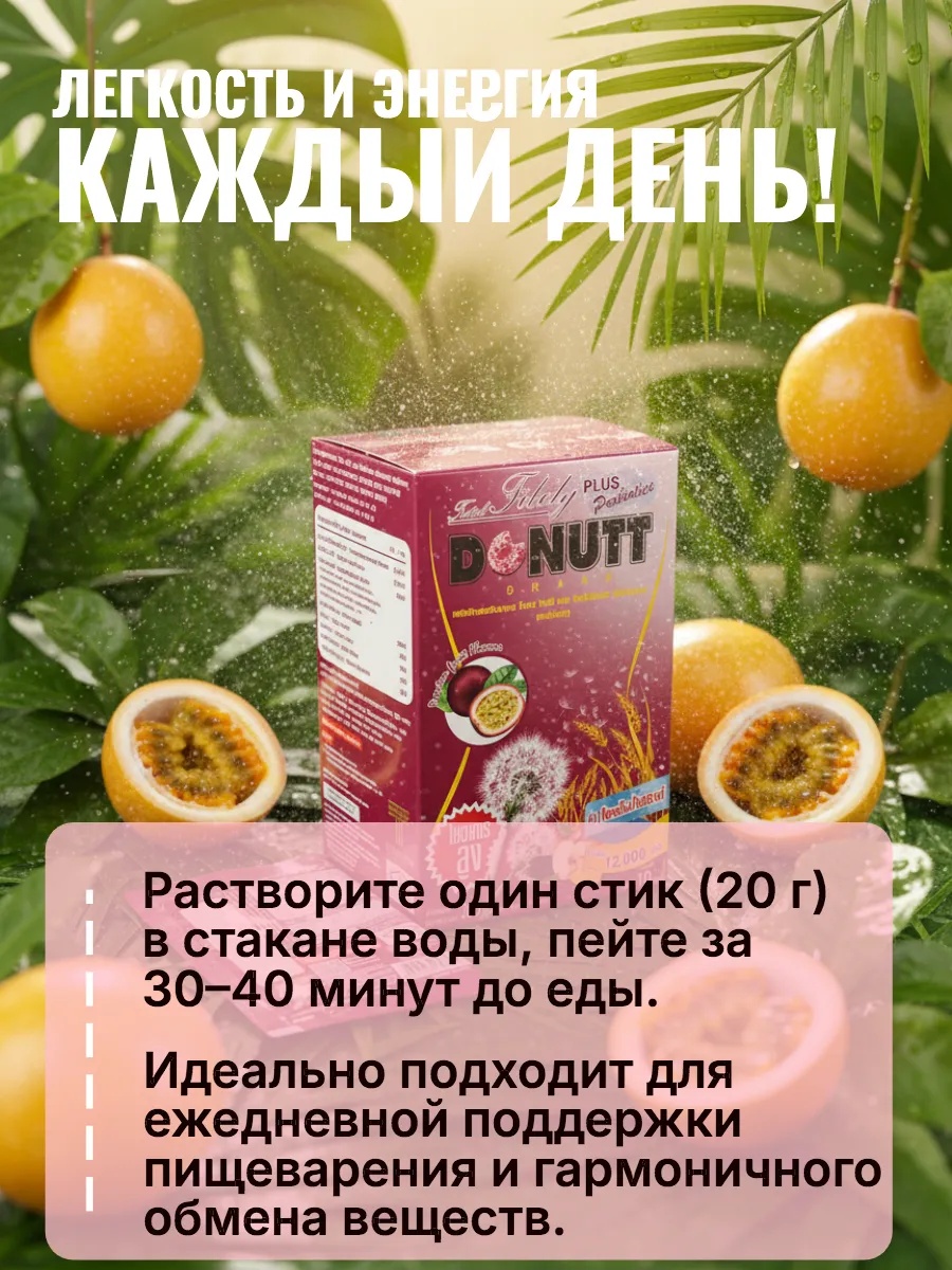 БЫЛО 92р! Клетчатка растворимая питьевая со вкусом маракуйи, Donutt