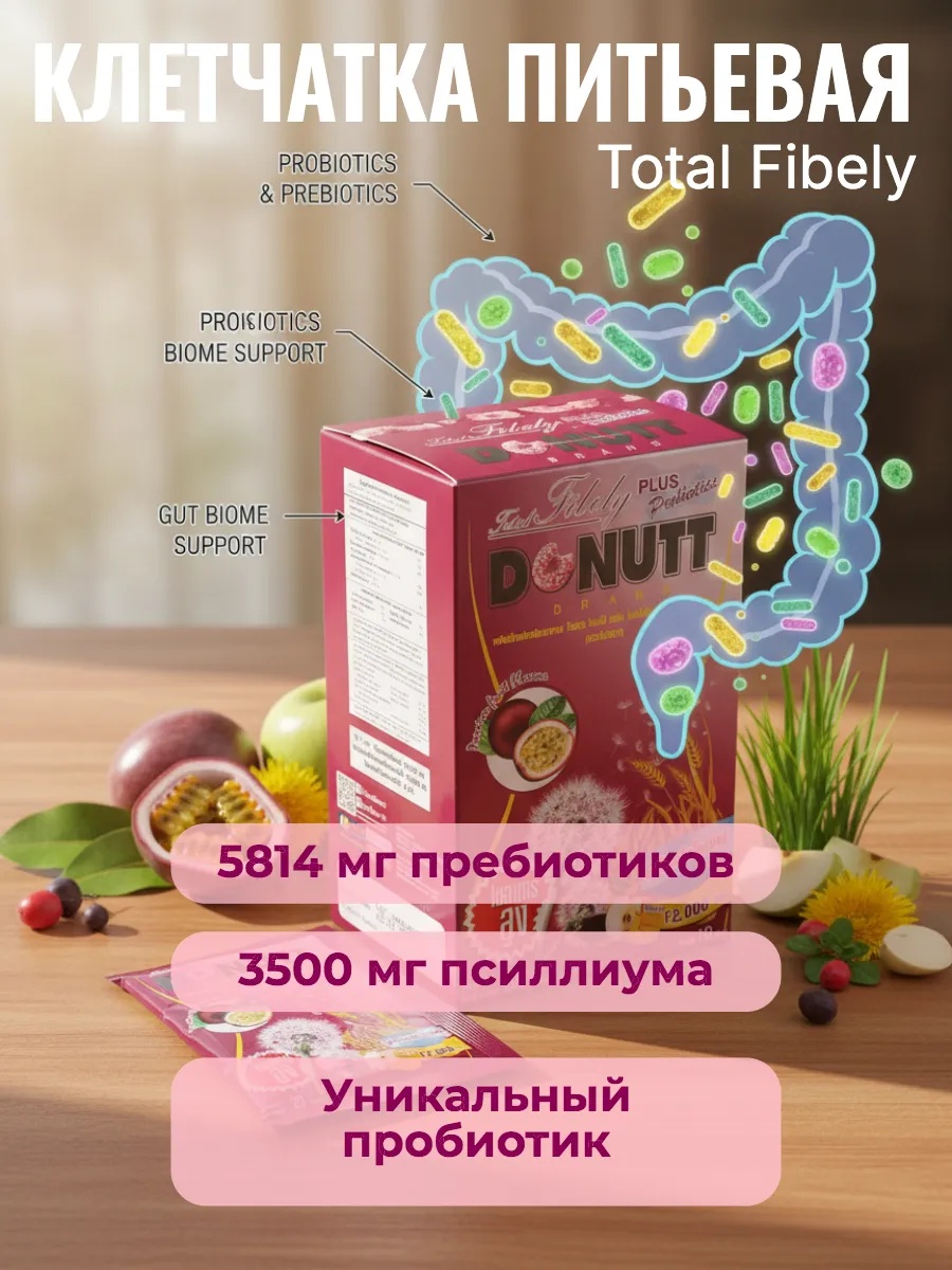 Уникальный состав формулы Donutt включает комплекс компонентов, направленных на создание сбалансированной дружественной микросреды в кишечнике и обеспечение организма необходимыми нутриентами. Ключевая роль здесь принадлежит фруктоолигосахаридам — природным пребиотикам, которые способствует усиленной выработке собственных полезных бактерий, формируя фундамент для гармоничной работы системы пищеварения.