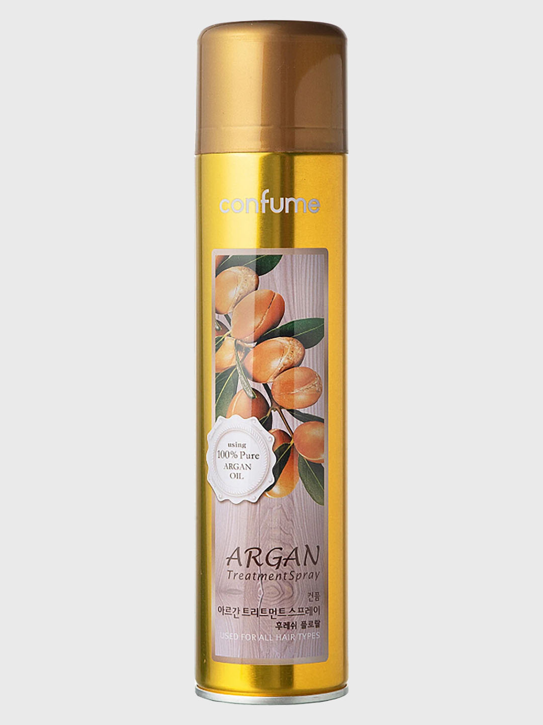 Лак для укладки волос с аргановым маслом Welcos Confume Argan Treatment Spray обладает фиксацией средней степени и идеально подойдёт для лёгких естественных укладок. Не склеивает пряди и не утяжеляет их. Помимо своих укладочных свойств, средство дополнительно ухаживает за волосами, питая и увлажняя их. Укрепляет и защищает от агрессивного воздействия внешних факторов.