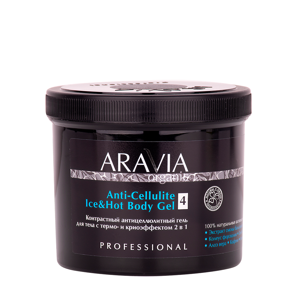 ARAVIA ( АРАВИЯ ) Контрастный гель для тела с интенсивным липолитическим и антицеллюлитным свойствами разработан для радикальной борьбы с локальными жировыми отложениями, целлюлитом любой степени, дряблостью кожи. Мощный эффект средства происходит за счет переменного воздействия тепла и холода, что позволяет усилить глубину и эффективность действия активных компонентов на зоны локального похудения.