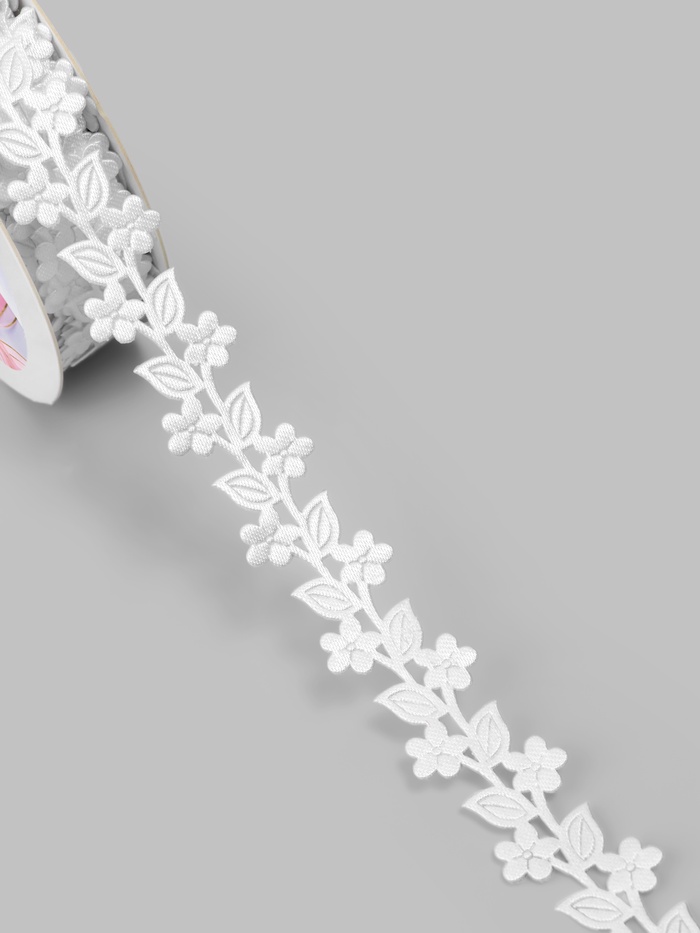 Лента фигурная «Ветви с цветами», 20 мм, 9±0.5 м, белая