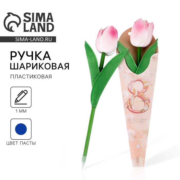 Ручка прикол, шариковая, синяя паста, 1.0 мм «8 марта: Тюльпан»