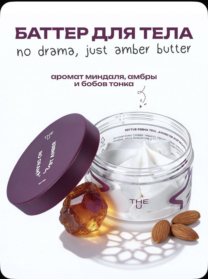 Увлажняющий баттер для тела No Drama, Just Amber Butter — путешествие на восток, где воздух наполнен изысканными пряными оттенками и сладким теплом специй.