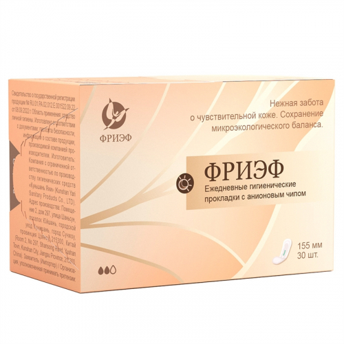 Артикул: 0231 Ежедневные гигиенические прокладки с анионовым чипом. "Фриэф", 155 мм, 30 шт купить за 121 ₽ в интернет-магазине "Зелёная Коробка"