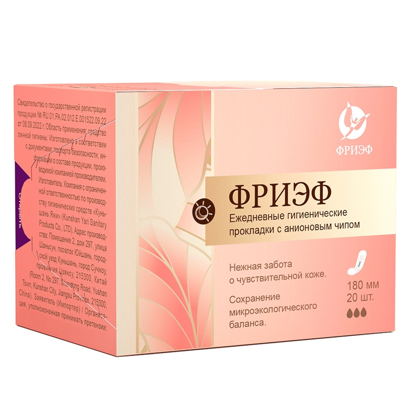 Ежедневные гигиенические прокладки с анионовым чипом. "Фриэф", 180 мм, 20 шт