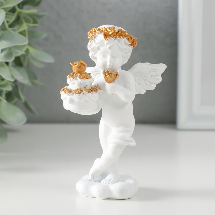 Фигурка полистоун «Белоснежный ангел с тортом украшенным розочками», 6×4.5×11 см