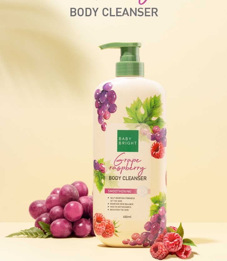 С ароматным гелем для душа Baby Bright ежедневные гигиенические процедуры станут настоящим блаженством и подарят вам ощущение идеальной чистоты. Средство глубоко очищает и интенсивно питает вашу кожу, поддерживая ее мягкость, тонус и эластичность. Благодаря богатому антиоксидантами маслу виноградных косточек гель сохраняет здоровье и красоту кожи и предотвращает появление признаков старения, а также регулирует гидролипидный баланс. Обогащенный витамином С, экстракт малины укрепляет кожу и помогает ускорить обновление ее клеток, делая ее гладкой и упругой.