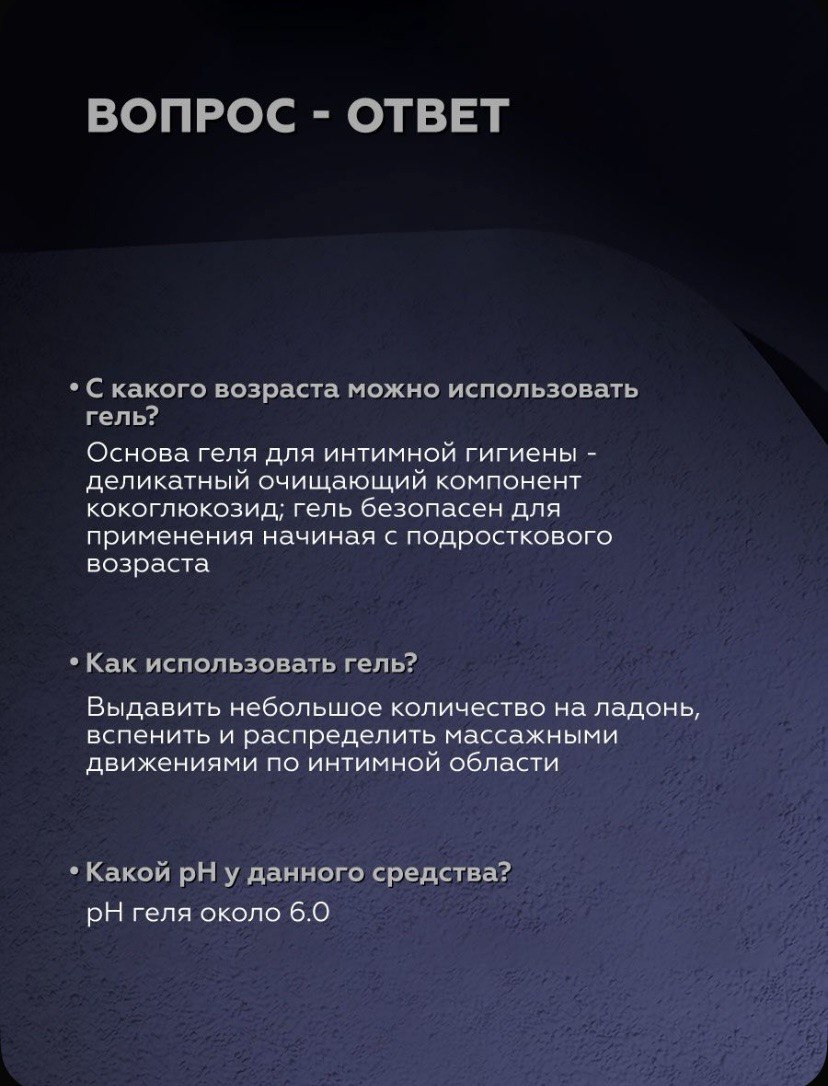 Средство имеет оптимальный для кожи интимной зоны мужчин, близкий к нейтральному рН.