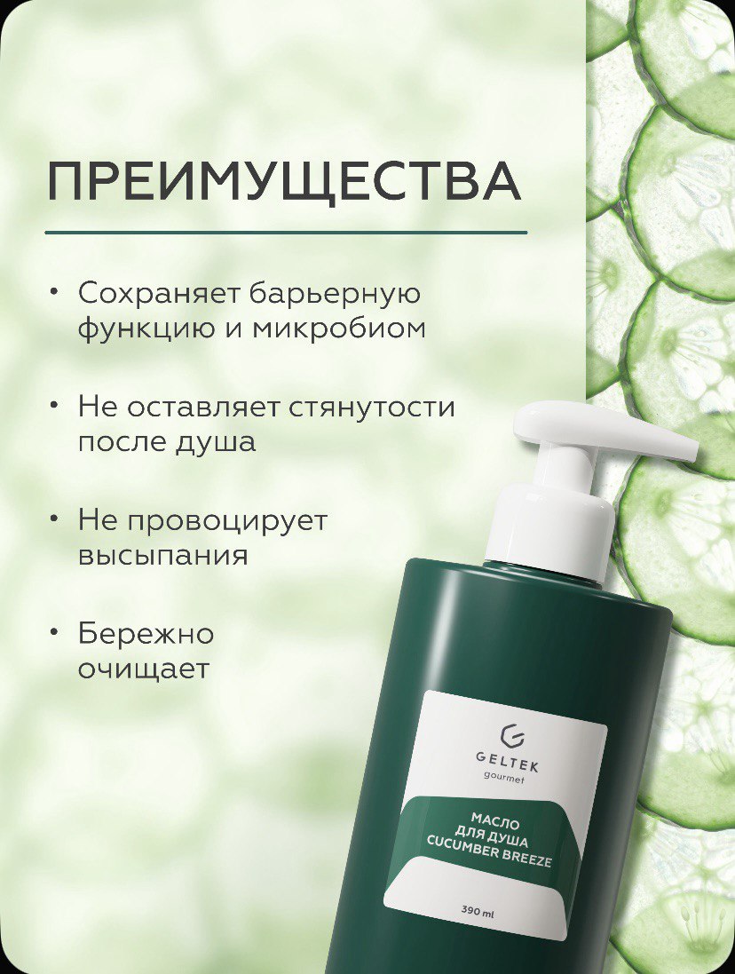 Масло со свежим огуречным ароматом предназначено для бережного очищения чувствительной, раздражённой, сухой, огрубевшей кожи любого типа. Некомедогенная формула с мягкой моющей основой не раздражает и не стягивает кожу. Пребиотики и антиоксиданты в составе помогают сохранить здоровый микробиом и поддерживать защитный барьер кожи.