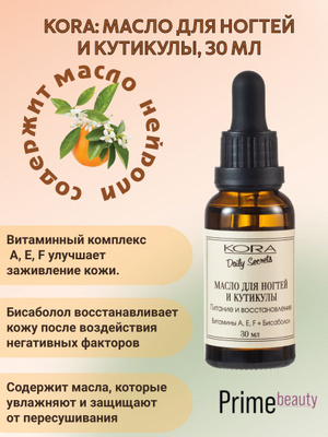 Масло для ногтей и кутикулы Питание и восстановление Daily Secrets российской марки Kora подходит для ежедневного применения. Нежная, невесомая текстура легко и равномерно распределяется, отлично впитывается полностью, не требует смывания, комплексно улучшает состояние кожи и ногтей.