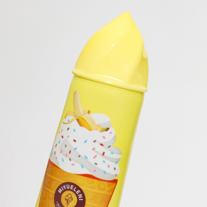 Состав: вода, глицерин, минеральное масло, диметикон, полиакриламид, изопарафин C13-14, лаурет-7, карбомер, триэтаноламин, метилпарабен, пропилпарабен, ароматизаторы банана и мороженого.