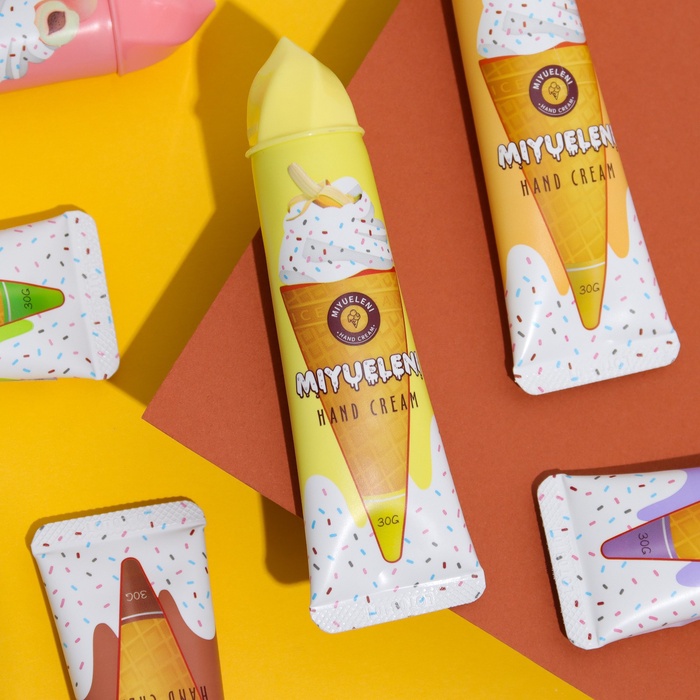Лёгкий увлажняющий крем с ароматом наивкуснейшего мороженого. Яркий и оригинальный тюбик крема в виде мороженого вызывает восторг у любого, кому попадает в рукию, по мимо этого, он имеет специальный необычный наконечник, который позволяет контролировать количество крема при нанесении на руки. Крем замечательно питает, увлажняет, смягчает, оживляет и тонизирует кожу рук, делая ее еще более нежной, гладкой и сияющей. Крем быстро впитывается, обладает разглаживающими свойствами. Каждый крем имеет свой неповторимый аромат. После применения кожа становится невероятно мягкой, бархатистой, при этом без липкого или жирного эффекта. Подходит для ежедневного ухода за руками.