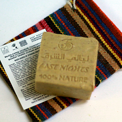 Состав: оливковая эмульсия оливки сирийского сорта Абу- Сатл (Olea Europaea), масла: коры коричного дерева (Cinnamomum verum), Кардамон узколистный (Aframomum angustifolium), соцветий гвоздики табризской (Dianthus tabrisianus), мускатник душистый (Myristica fragrans), семян сафлора красильного (Сarthamus tinctorius), гидролат листьев Чабрец ползучий (Thymus serpyllum), пудра листьев подорожника песчанного (Plantago arenaria), мыльная зола солевая древесная Алкали «al-kali potash» поташ из водной вытяжки золы Дуба Черешчатого (Quercus robur). *с указанием подвидов