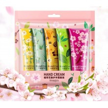 Набор увлажняющих кремов для рук -хризантема ( питание кожи ) -цветкок сакуры ( увлажнение и омоложение ) -зеленый чай ( увлажнение и гладкость  ) - алоэ ( увлажнение кожи (после пересушивания, обветривания) - мед ( насыщение кожи витаминами) Способ применения :  нанесите незначительный объем крема на чистую и сухую кожу рук и разотрите до полного впитывания Состав:  вода, глицерин, бутиленгликоль, минеральное масло, мёда экстракт, вишни экстракт, алоэ вера барбадосского сок, полидиметилсилоксан, цетеариловый спирт, изононил изононаноат, экстракт цветков хризантемы садовой, глицерил полиметакрилат, гидроксиэтил акрилат/натрия акрилоилдиметилтаурата сополимер, экстракт овса посевного, бета-глюкан, метилпарабен, йодпропинилбутилкарбамат, дикалий глицирризинат, ароматизатор, экстракт цветков ромашки аптечной