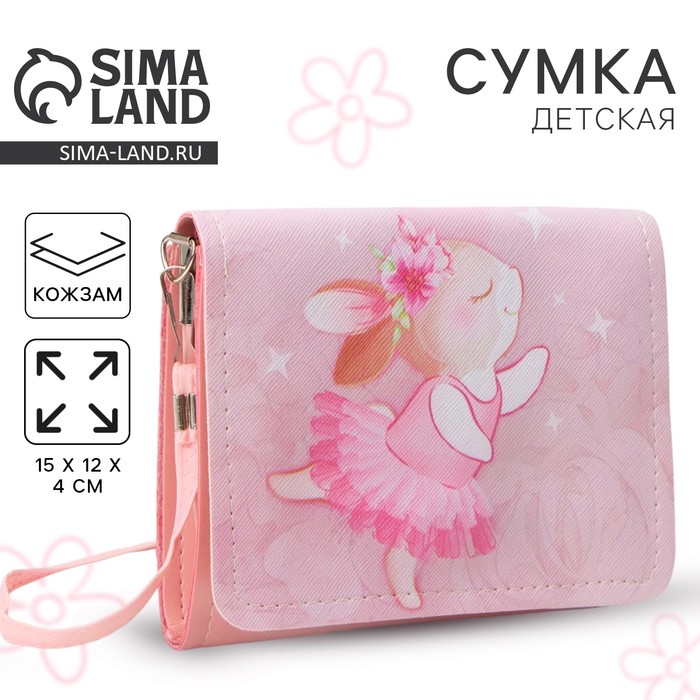Сумка детская для девочки «Зайка балерина», на клапане, розовая, 15×4×12 см
