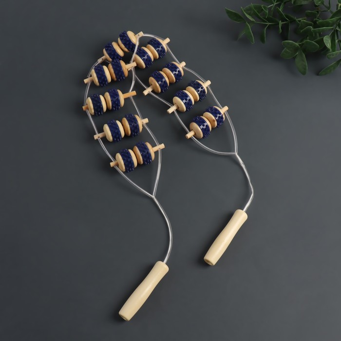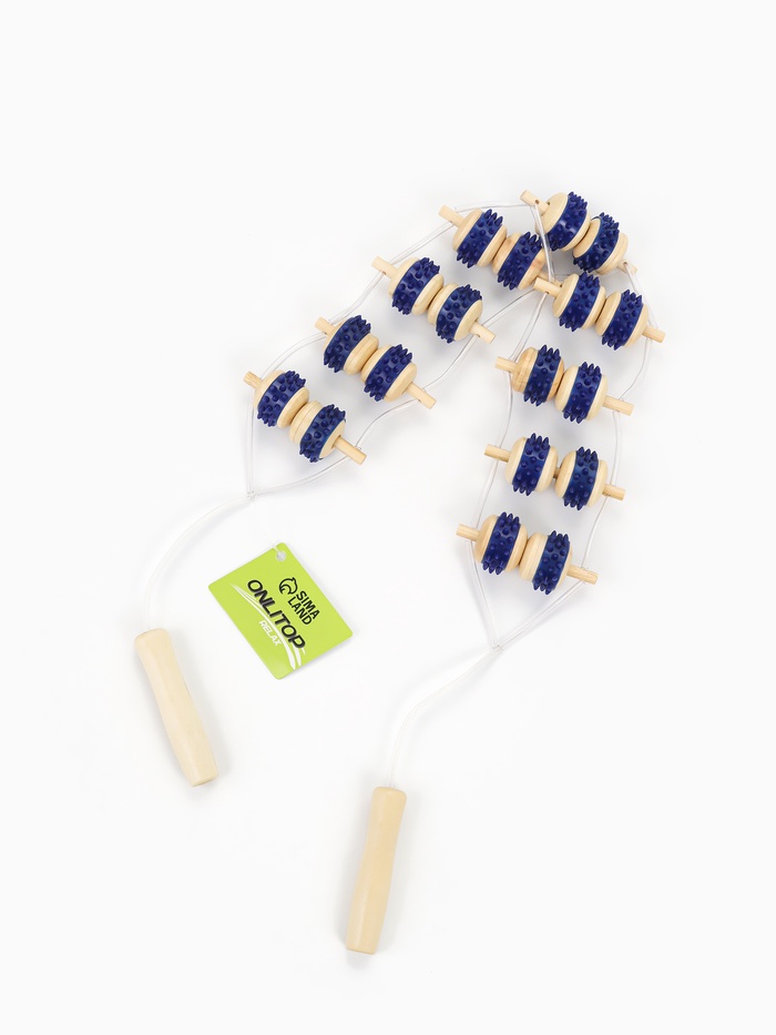 Массажёр-лента для спины, 9 звеньев, деревянный, с шипами, 84×7.5×3 см, МИКС