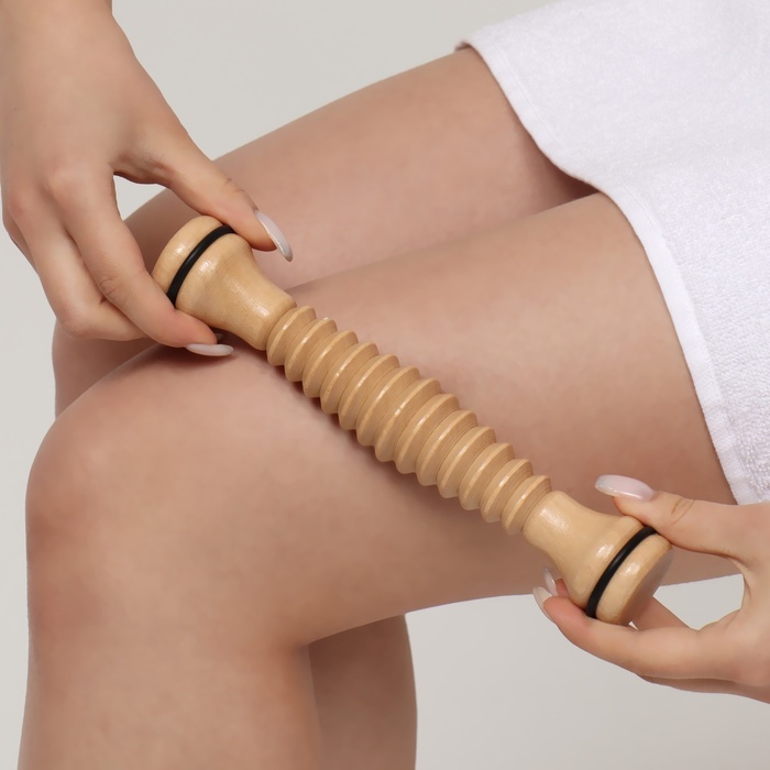 Массажёр «Скалка», универсальный, d=4×22 см, с резьбой, деревянный