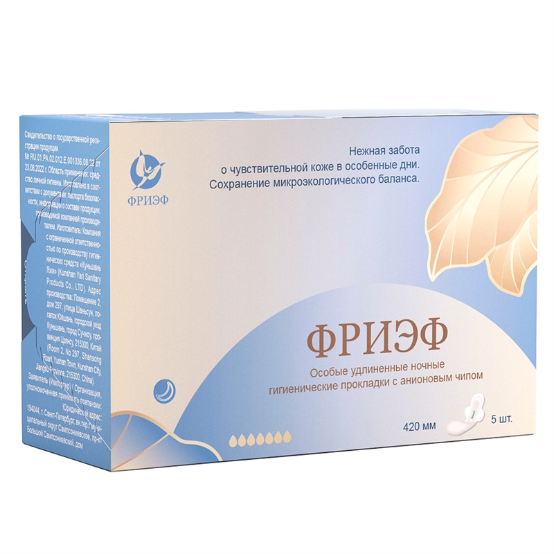 Артикул: 0236 Особо удлиненные ночные гигиенические прокладки с анионовым чипом. "Фриэф", 420 мм, 5 шт купить за 121 ₽ в интернет-магазине "Зелёная Коробка"