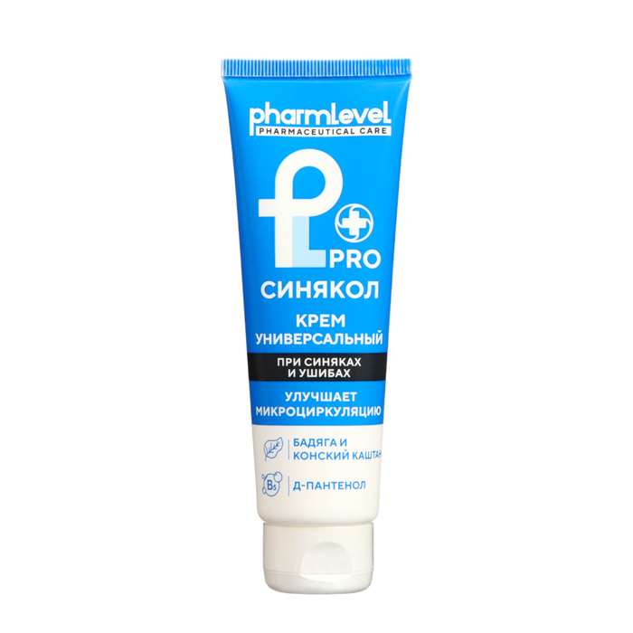 Крем для тела универсальный Pharmleve ProСинякол предназначен для ухода за кожей при синяках и ушибах. Он содержит высокоэффективную рецептуру, которая способствует восстановлению повреждённых участков кожи и ускоряет процессы регенерации. В состав крема входят экстракты бадяги и конского каштана, которые уменьшают отёчность и улучшают микроциркуляцию, а также Д-пантенол и комплекс масел авокадо, ши и льна, интенсивно питающие и смягчающие кожу, создавая защитный барьер от негативных воздействий окружающей среды.