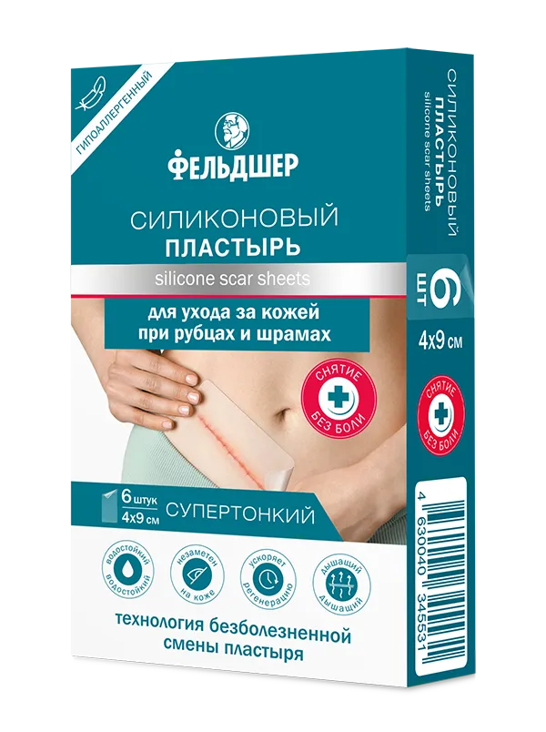 Пластырь силиконовый для ухода за кожей при рубцах и шрамах 6 шт. Фельдшер