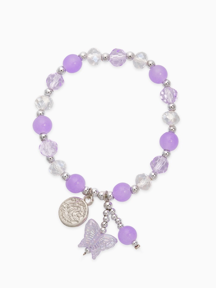 Добро пожаловать в мир беззаботного очарования и элегантности с очаровательным браслетом, щедро украшенным сиреневыми бабочками и мелкой монеткой. Ваша улыбка и отличное настроение гарантированы, когда вы увидите, как этот браслет с мягким серебристым отблеском оживляет ваш образ.